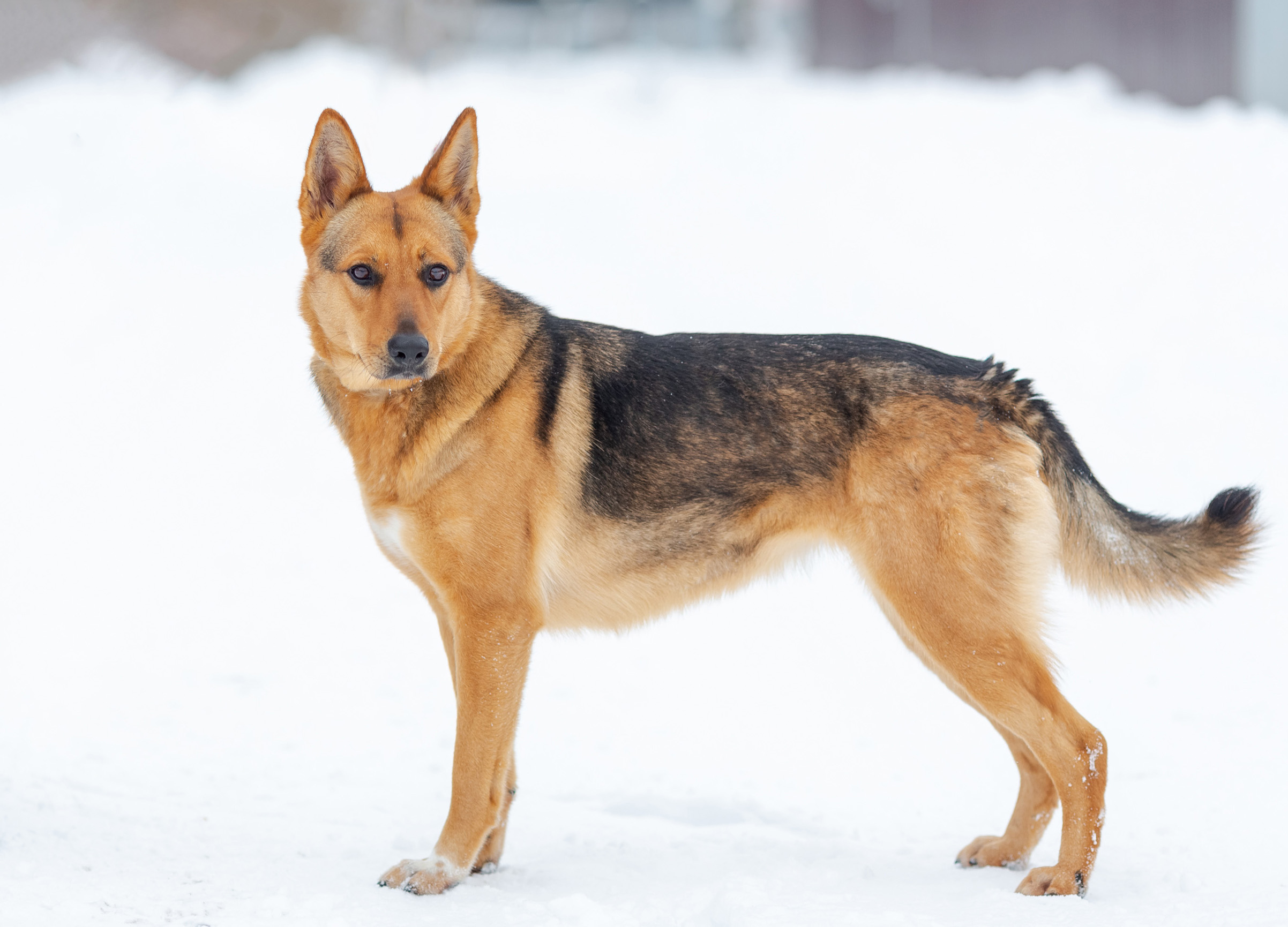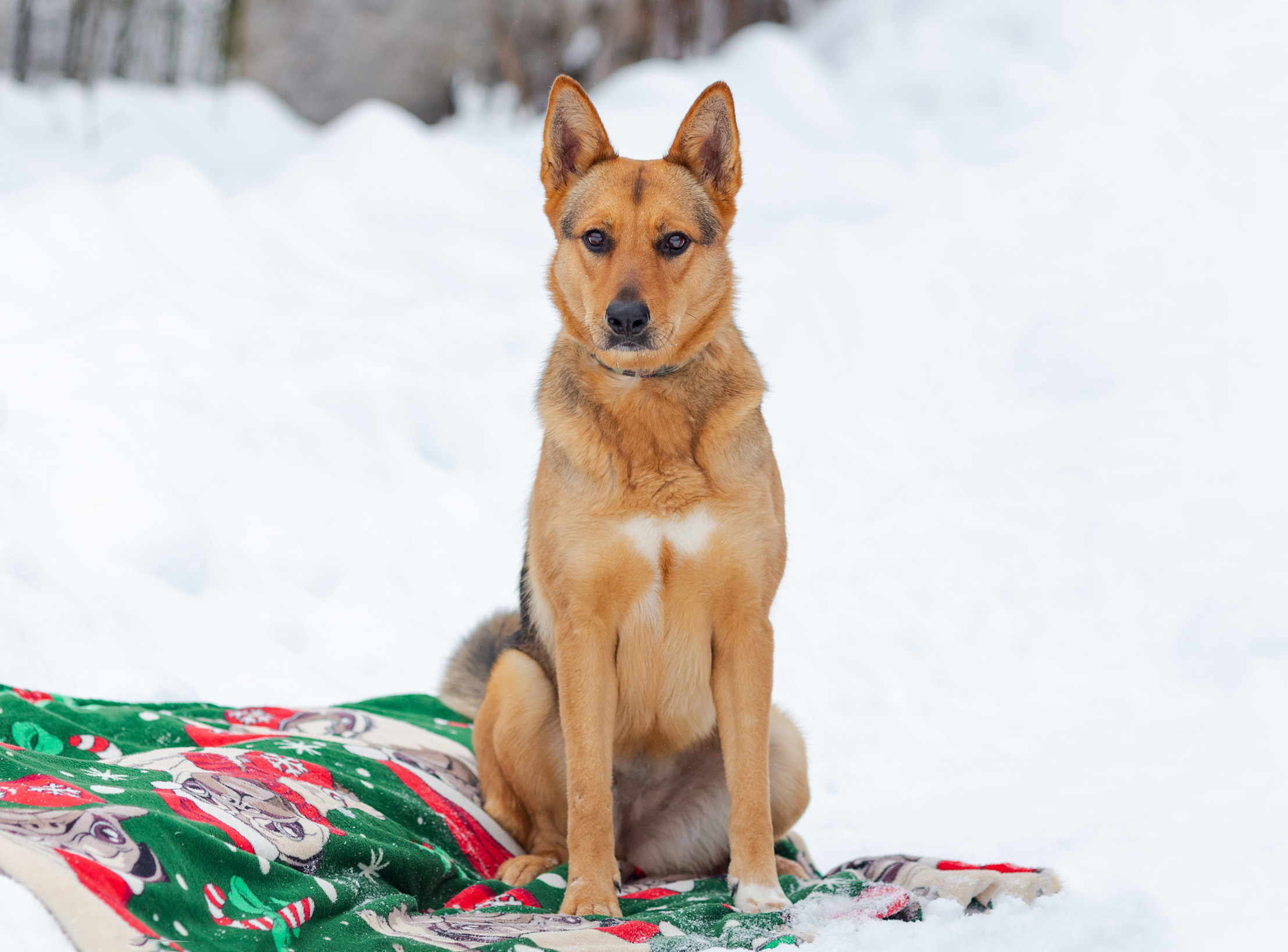 У неё есть кожаный ошейник со светоотражателем, явно бывшедомашняя (но без чипа, клейма и адресника), месяц не можем найти хозяина, ни по группам, ни по бумажным объявам, ни по опросам местных жителей в округе.